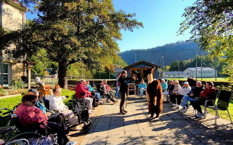 Die Gäste der AWO Seniorenbetreuung Sitzendorf und der AWO Tagespflege Rudolstadt durften sich vergangene Woche über einen ganz besonderen Besuch freuen: Die Alpakas und Lamas vom Roten Berg in Unterwellenborn kamen mit ihrer Besitzerin Michelle Dinter vorbei.