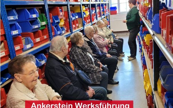 Bereits seit vergangenem Jahr führt die Tagespflege in Sitzendorf mit ihren Seniorinnen und Senioren das Ankerstein Projekt durch. Frau Ines Schroth – Betriebsleiterin der Ankerstein GmbH – stellte speziell für dieses Projekt Therapiekästen für Senioren zur Verfügung. Diese wurden und werden auch zukünftig in der Tagespflege Sitzendorf genutzt. Damit werden kognitive Bereiche wie zum Beispiel das räumliche Sehen, die Ausdauer und Konzentration gefördert. Als Projekthöhepunkt stand vergangenen Freitag der Besuch der Ankerstein Manufaktur in Rudolstadt an. Die Seniorinnen und Senioren waren von der Werksführung mehr als beeindruckt und lauschten gespannt den Worten von Frau Ines Schroth.