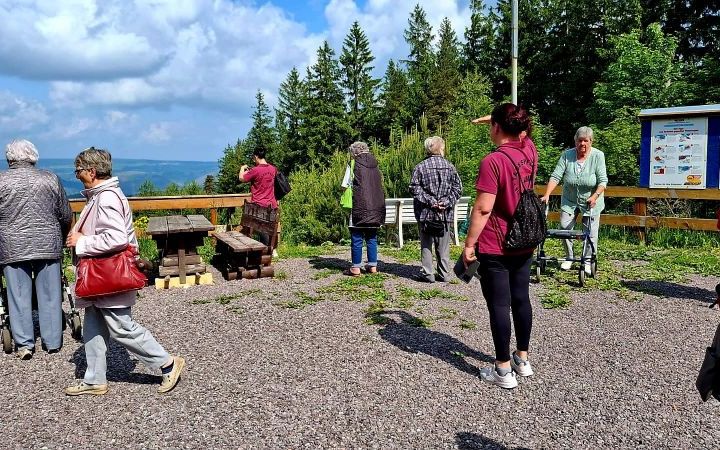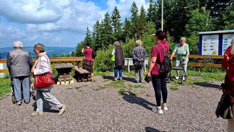 "Warum in die Ferne schweifen, wenn das Gute ist so nah." Letzte Woche machten sich die Mitarbeiterinnen der SeniorenBetreuung Sitzendorf mit den Gästen auf zum Berggasthof Fröbelturm in der Nähe von Oberweißbach. Bei schönsten Wetter genossen die Tagesgäste die schöne Weitsicht und die Ruhe der Umgebung. Im kleinen Imbiss erworben alle Gäste ein Kräutersalz, worüber sich sehr gefreut wurde.