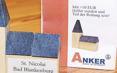 Mit einer symbolischen Kirche aus Anker-Bausteinen können Interessenten für einen Mindestbeitrag von 10 Euro Helfer und somit Teil der Rettung werden. Foto: Roberto Burian