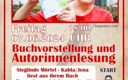 Am Freitag, den 07. Juni 2024, um 18:00 Uhr laden wir herzlich zu einer besonderen Veranstaltung ein! Freuen Sie sich auf eine unterhaltsame Buchlesung mit der Jenaer Dichterin Sieglinde Mörtel und feiern Sie mit uns den Start unseres neuen Projekts "Bibliotheksengel".