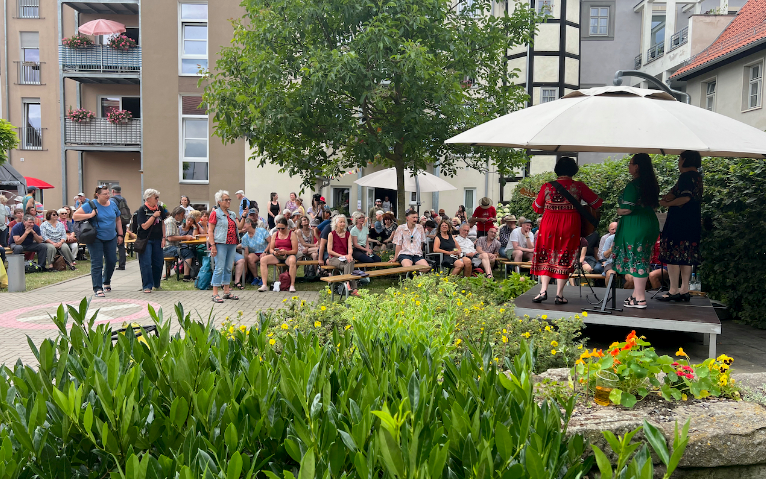 Auch bei uns hat das Rudolstadt-Festival Einzug gehalten! Seit vielen Jahren ist die Begegnungsstätte Markt 8 ein fester Austragungsort für dieses wunderbare Event. Von Freitag bis Sonntag verwandelte sich der Hof unserer Begegnungsstätte in eine Bühne für zahlreiche Konzerte.