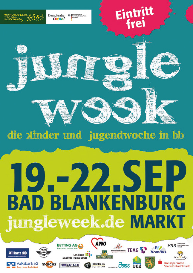 Damit das Angebot auch funktioniert, hat sich für die Jungle Week 2009 das Jugendnetzwerk Bad Blankenburg als loser Zusammenschluss von Vereinen und Organisationen der Kinder- und Jugendarbeit gegründet, das jedes Jahr die Jugendwoche organisiert. Mit dem Netzwerk sollten zudem Synergieeffekte erzeugt werden, betont Jahn. Ein Anliegen, das durchaus von Erfolg gekrönt ist. So strahlt die Jungle Week mittlerweile über die Stadtgrenzen von Bad Blankenburg hinaus. An der Jungle Week beteiligen sich auch Vereine und Organisationen aus Saalfeld, Rudolstadt, Königsee, bis hin zu Mellenbach. „Die Keimzelle war die christliche Jugendarbeit vor Ort. Aber inzwischen hat sich die Jungle Week auf den ganzen Landkreis ausgedehnt“, fasst Jahn zusammen.