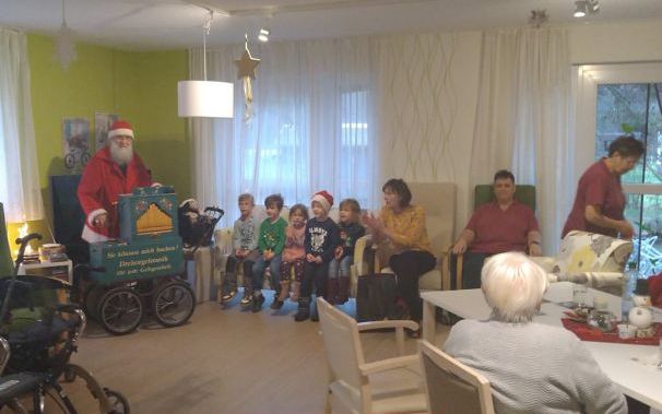 Klangvolle Begegnungen: Der Drehorgelspieler und die Kinder des Kindergartens „Weltentdecker“ besuchten diese Woche unsere Seniorenbetreuung in Sitzendorf. Die Seniorinnen und Senioren genossen die melodischen Töne der Drehorgel und lauschten begeistert den Gesängen der Kinder. Eine wunderbare Einstimmung auf die festliche Weihnachtszeit für Jung und Alt gleichermaßen!