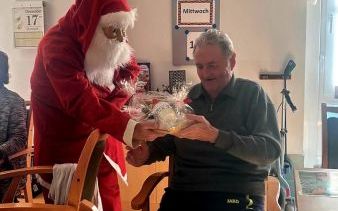 Natürlich durfte auch der Weihnachtsmann nicht fehlen, der jedem Gast eine kleine Aufmerksamkeit überbrachte. Ein absolutes Highlight folgte zum Mittagessen: Unsere Mitarbeitenden servierten ein selbstgekochtes Weihnachtswunschessen mit Klößen, Rouladen und Rotkraut – zum Nachtisch ein leckeres Tiramisu. Es wurde genossen und ausgiebig geschlemmt.