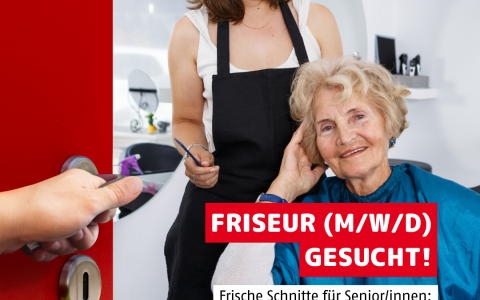 Wir suchen eine herzliche Kooperation mit einem Friseursalon oder einer/m Selbstständigen (Friseurmeister/in), die Freude daran haben, unseren Senior/innen ein Lächeln ins Gesicht zu zaubern.