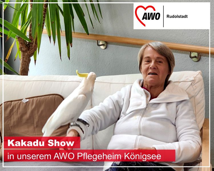 Groß war die Freude bei den Bewohnerinnen und Bewohnern im Pflegeheim Königsee, als sie Besuch von einem Kakadu am vergangenen Freitag erhielten. Er führte Kunststücke vor, sprach sogar mit ihnen und sorgte im gesamten Pflegeheim für gute Laune. Für die Bewohnerinnen und Bewohner, als auch für unser Team war es ein aufregendes Erlebnis und eine wunderbare Ergänzung zu dem Alltag im Pflegeheim.