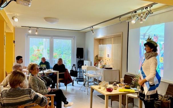 Bei einem Workshop über das Räuchern ging sie auf die Verwendung heimischer Kräuter und die Wirkung der duftenden Dämpfe auf unsere Stimmung und unser Wohlbefinden ein. Ihre leidenschaftliche Darstellung entführte uns in eine Welt voller Aromen und Erinnerungen an frisches Heu in der Scheune – eine Veranstaltung, die alle Sinne ansprach.