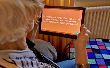 Unsere MitarbeiterInnen im Betreuungsbereich des Seniorenheims Rudolstadt und des Pflegeheims Königsee bemühen sich sehr, den Kontakt der BewohnerInnen zu Ihren Familien aufrechtzuerhalten. Über Tablets können sich BewohnerInnen mit Ihren Angehörigen im Videochat wenigstens sehen, hören und sprechen.