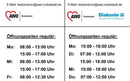 Ab Montag, den 11.04.2022, werden im Bürger-Testzentrum in der ehemaligen Hauptpost, Caspar-Schulte-Straße 1 in Rudolstadt sowie im Bürger-Testzentrum am Saalemaxx Freizeit- und Erlebnisbad Rudolstadt die Öffnungszeiten geändert.