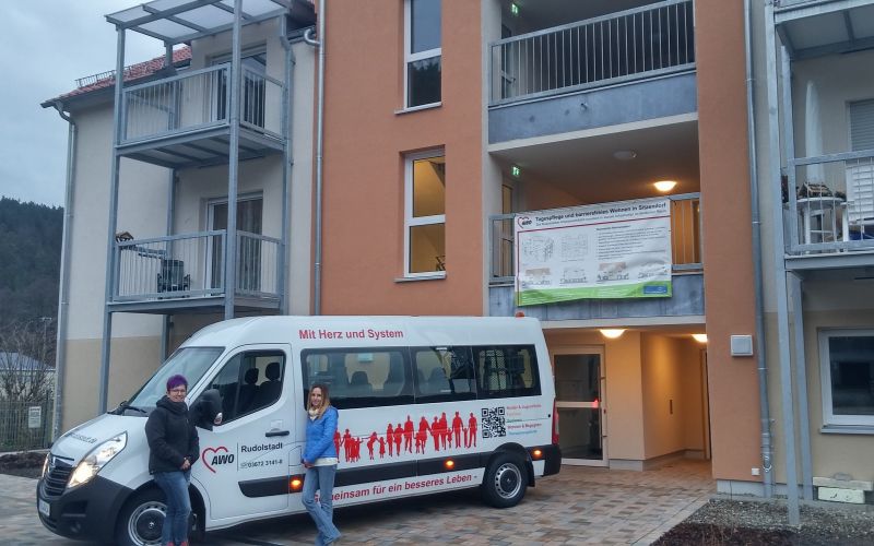 Darüber befindet sich das barrierefreie Wohnen, bestehend aus zwölf altersgerechten Wohneinheiten mit je zwei Zimmern und einem Balkon. Alle Gemeinschaftsräume, Flure und Wohnungen sind barrierefrei gestaltet, ein Aufzug ist vorhanden. Im Juli 2016 wurde der Grundstein für das vom Architekturbüro Rainer Lindenmann aus Rudolstadt geplante Gebäude gelegt, gefolgt vom nächsten Meilenstein im Bauprozess, dem Richtfest im November. Der Bau wurde jetzt plangemäß fertiggestellt. „Auch wenn die Kapazität bei weitem noch nicht ausreicht, ist es für Sitzendorf ein Schritt in die richtige Richtung, unseren Senioren ein altersgerechtes Wohnen zu ermöglichen. Wir als Gemeinde sind froh, dass die AWO unseren Vorschlag, ein Stück vom Sportplatzgelände dazuzukaufen, um eine schöne Gartenanlage zu errichten, aufgegriffen hat“, sagte Sitzendorfs Bürgermeister Martin Friedrich (CDU).