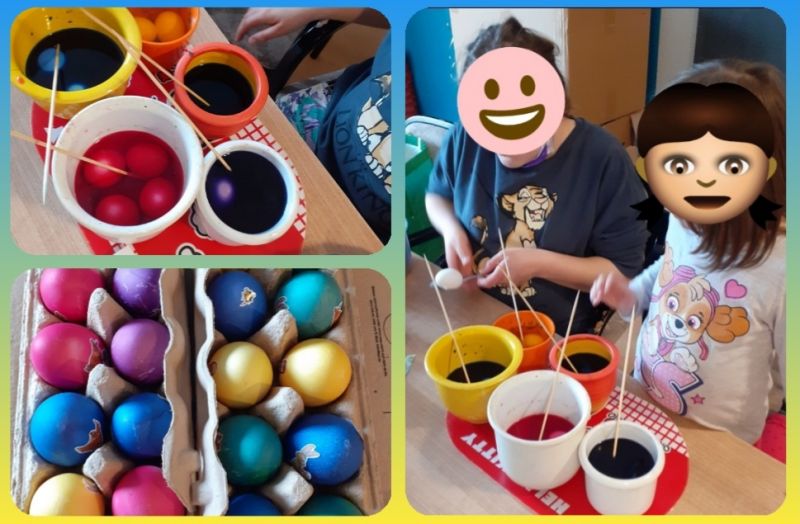 Im Integrativen Kindergarten "Knirpsenland" wurde der Osterhase mit angemalten Eiern und bunten Bildern empfangen.