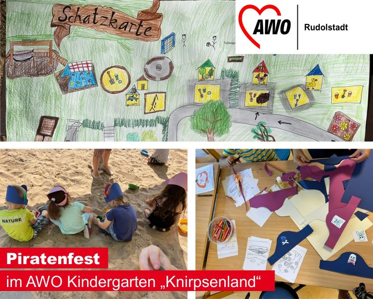 Piraten, Ahoi hieß es in der vergangenen Woche für die Kinder unseres AWO Kindergartens „Knirpsenland“. Jede Gruppe hatte die Möglichkeit, individuell einen schönen Tag zum Thema Piraten zu gestalten. Neben der Anfertigung von Piratenhüten, Fernrohren und Masken, gaben sich die Kinder zudem verrückte Piratennamen. Bei einem abwechslungsreichen Quiz konnten die Kinder ihr Wissen zum Thema Piraten auf die Probe stellen. Krönender Abschluss bildete die Schatzsuche, wobei natürlich jeder einen kleinen Schatz gefunden hat.