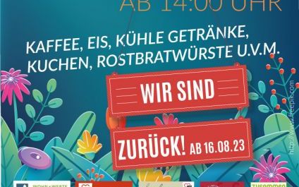Das SOMMERCAFÈ im Bürgerpark Kopernikusweg startet nach der Sommerpause ab jetzt wieder zuverlässig jeden Mittwoch ab 14:00 Uhr.