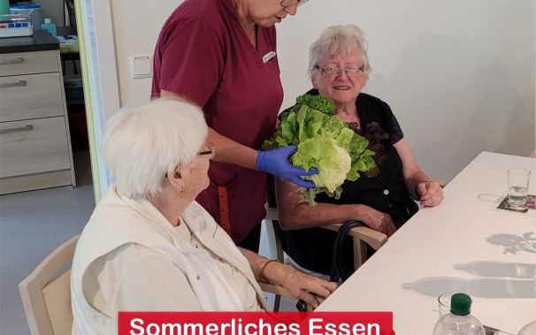 Bei diesem herrlichen Sommerwetter und der derzeitigen Ernte in den Gärten hat die Seniorenbetreuung Sitzendorf mit ihren Gästen ein leckeres Sommer Gericht zubereitet. Die Salatköpfe waren frisch aus dem Garten eines Gastes und alle beteiligten sich fleißig beim Zubereiten und ließen es sich dann gemeinsam schmecken.