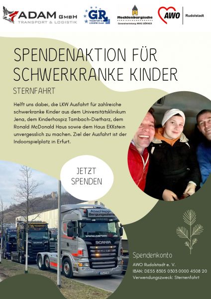 Unter der Leitung von Melanie Adam, Einrichtungsleiterin des AWO Gesundheitszentrums und Anke Görner findet die nächste Sternfahrt für schwerkranke Kinder statt. Der AWO Rudolstadt e.V. unterstützt als Ko-Organisator und ruft zu Spenden für dieses Herzensprojekt auf.