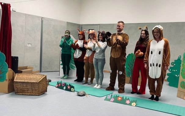 Letzte Woche hatten unsere Kinder das Vergnügen, das Schauspiel unserer Elterntheatergruppe zu erleben: „Der Grüffelo“. Mit großen Augen verfolgten die Kinder das Abenteuer der kleinen Maus durch den Wald… Es gibt ihn nämlich tatsächlich: den Grüffelo!