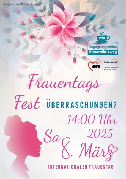 Am Samstag, den 08. März 2025, ab 14:00 Uhr findet die traditionelle Frauentagsfeier in der AWO Begegnungsstätte Kopernikusweg mit einem abwechslungsreichen Programm statt. Seit vielen Jahren nutzt das Quartiersmanagement diesen Anlass, um Frauen für ihr Engagement und ihre Lebensleistung zu danken.