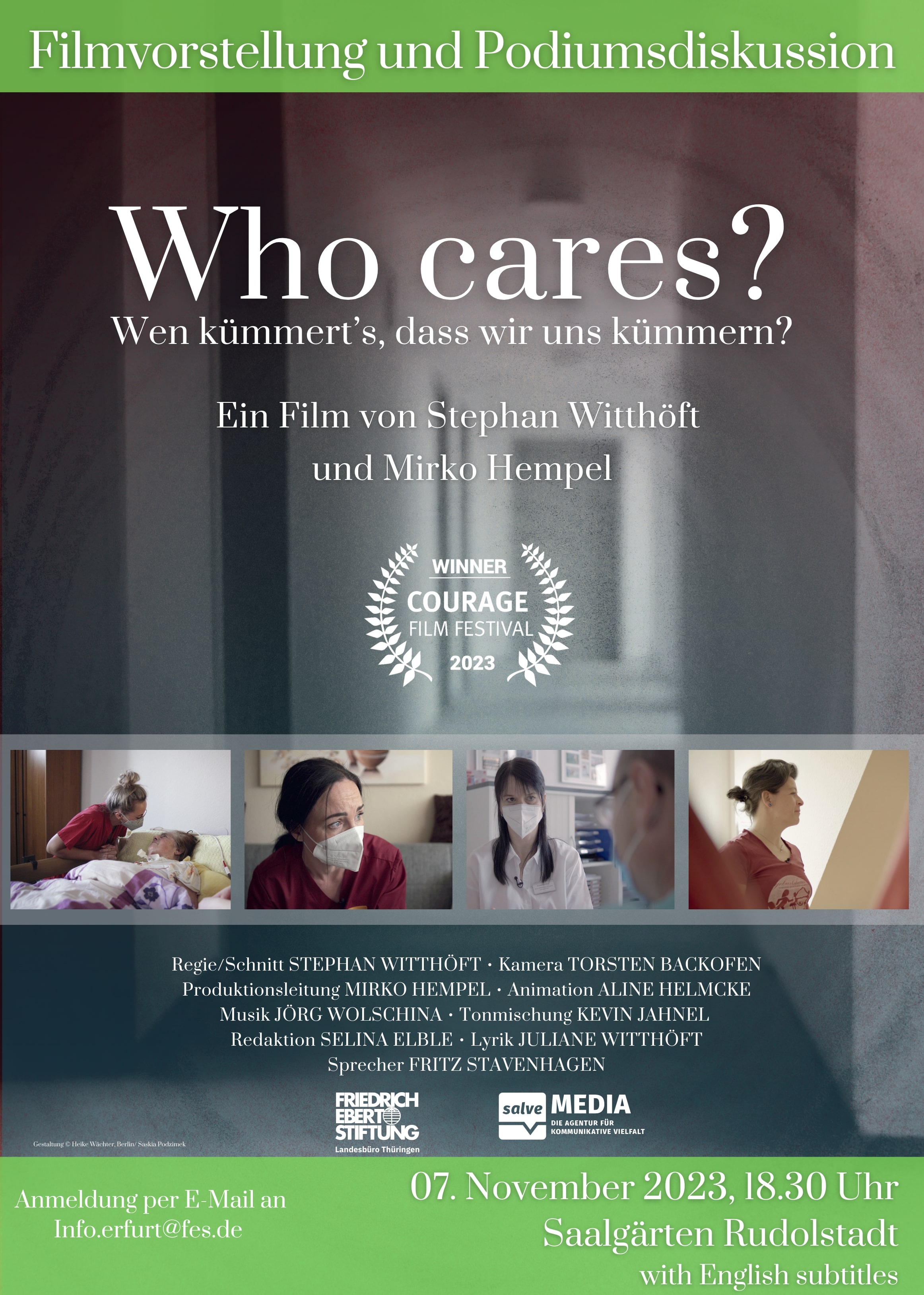 Einladung zur Filmvorstellung „Who cares? Wen kümmert´s, dass wir uns kümmern?“ mit anschließender Podiumsdiskussion am 07. November, um 18:30 Uhr in den Saalgärten Rudolstadt.