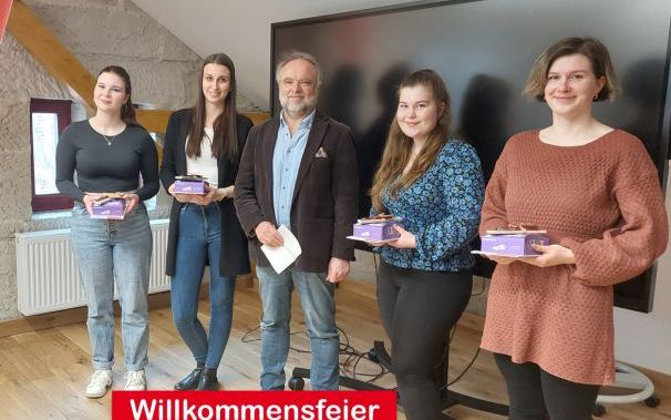 Im Rahmen einer kleinen Willkommensfeier begrüßten wir unsere zwei neuen Auszubildenden zum Erzieher sowie unsere vier dualen Studenten im Bereich der Sozialen Arbeit und Sozialpädagogik. Zugleich gratulierten wir Michelle Mäder, die ihr Duales Studium mit der Studienrichtung Kinder- und Jugendhilfe erfolgreich abgeschlossen hat und nun festes Mitglied in der stationären Kinder- und Jugendhilfeeinrichtung BR-AWO LAND ist.