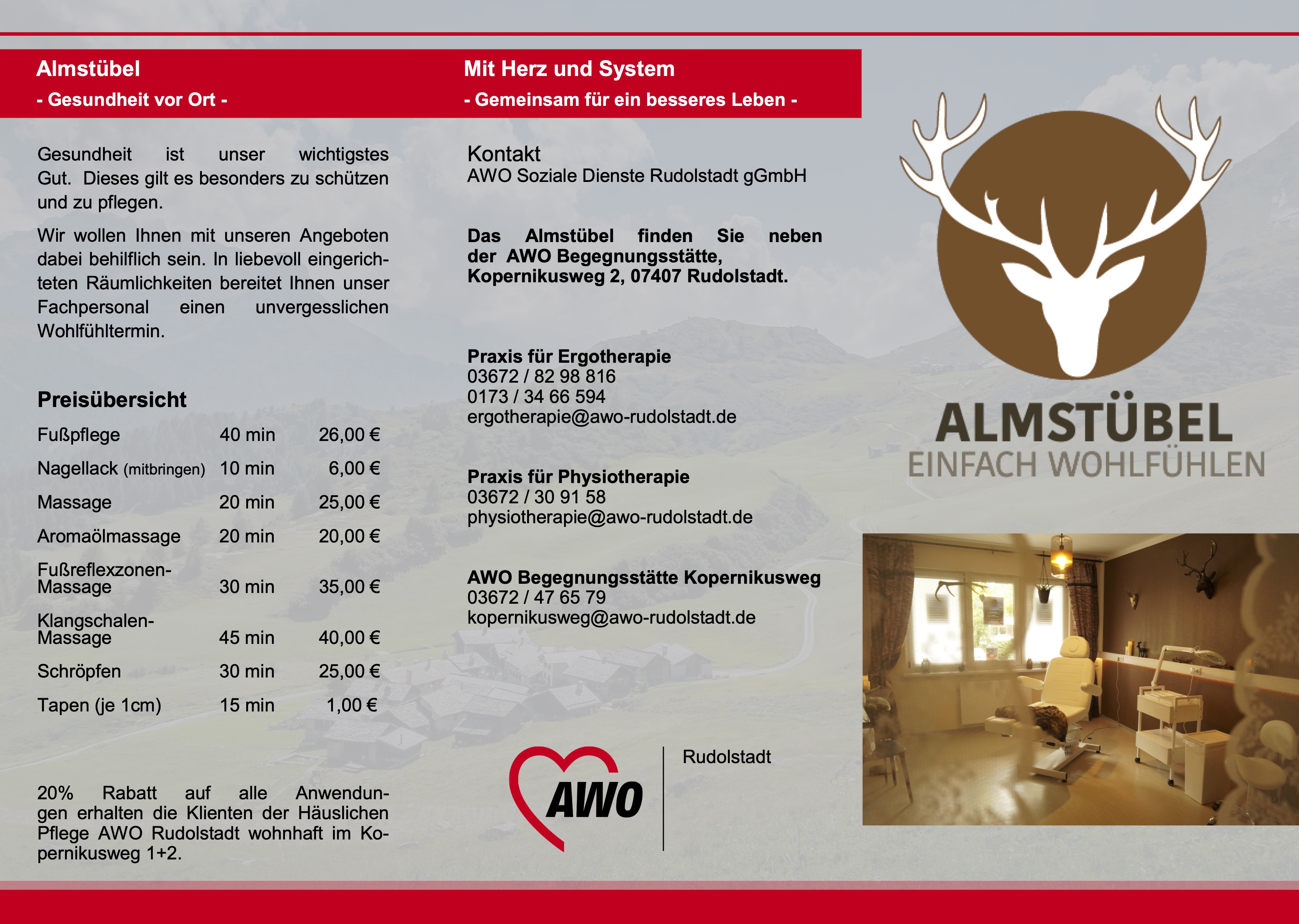 Von Januar bis Juni und von September bis Dezember, immer montags in zwei Durchgängen, in der Zeit von 09-10:00 Uhr und von 10-11:00 Uhr heißt es, Fit bleiben mit Frau Kämmer! Sie ist eine Mitarbeiterin aus dem Team des AWO Gesundheitszentrums. In einer kleineren Gruppe von max 10 Personen regt Sie die Bewegung mit den unterschiedlichsten Übungen, Methoden und Hilfsmittel an. Ein Durchgang beinhaltet insgesamt 10x1h Training. Die Gutscheine kann man 2xjährlich bei seiner Krankenkasse beantragen. Somit ist die Teilnahme fast kostenfrei. Falls Sie Interesse haben melden Sie sich unter folgender Telefonnummer bei uns an. 03672 47 65 79 Wir setzen Sie dann auf unsere Warteliste, da die Plätze begrenzt und begehrt sind. Ab Juni wechselt die Rückenschule mit dem Kurs Sturzprävention. Der findet immer freitags von 9-10 Uhr statt. Aktuelle Warteliste liegt in der Begegnungsstätte aus.