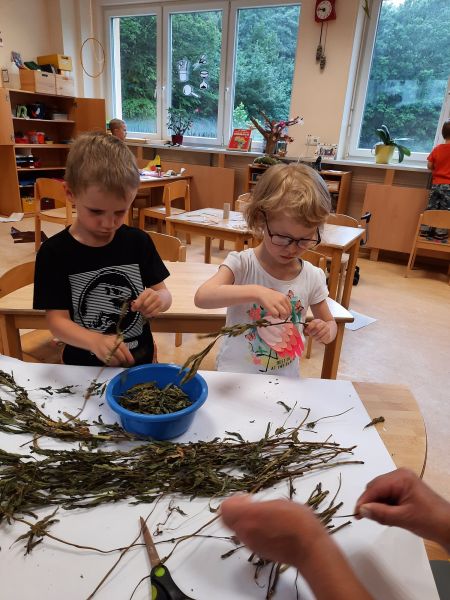 In der Kreativ- und Experimentierwerkstatt finden unsere kleinen Künstler viele Möglichkeiten und Anregungen, um mit Stiften, Pinsel, Leim und Schere sowie verschiedenen Materialien vorwiegend selbstständig und nach eigenen Vorstellungen kreativ tätig zu werden. Für unsere kleinen Forscher stehen unterschiedliche Utensilien zur Verfügung, um den kleinen Geheimnissen der Welt auf die Spur zu kommen.