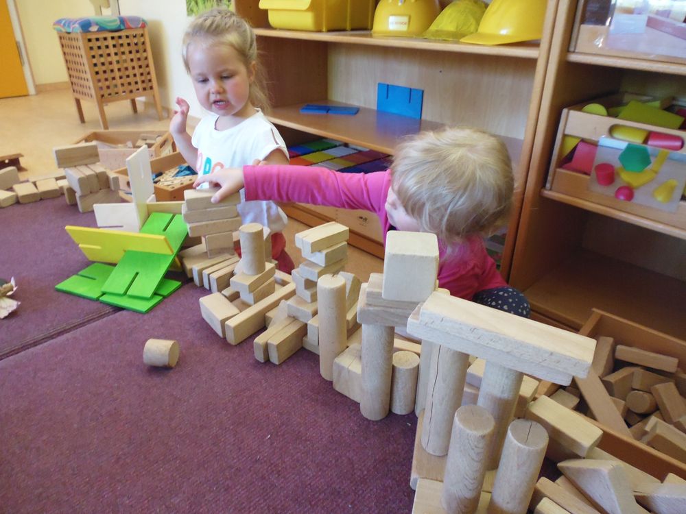 Im Bauraum haben die Kinder die Möglichkeit in ein kreatives und phantasievolles Konstruktionsspiel einzutauschen. Im Spiel trainieren sie spielerisch ihre feinmotorischen Fähigkeiten, ihre Augen- Handkoordination und üben den Umgang mit Längen, Mengen und Formen.