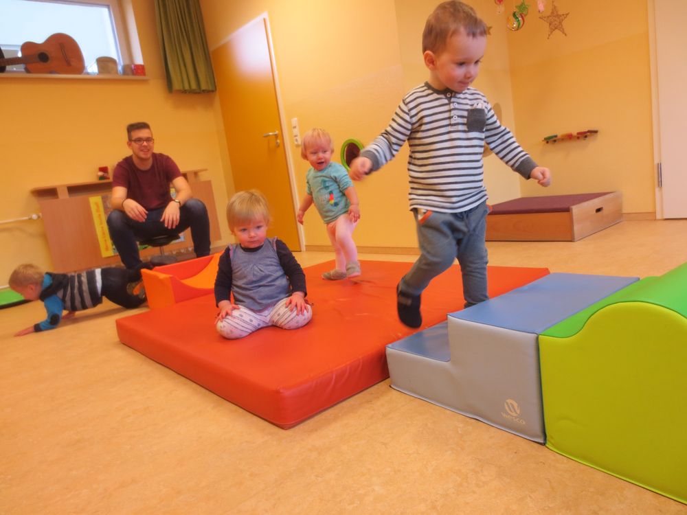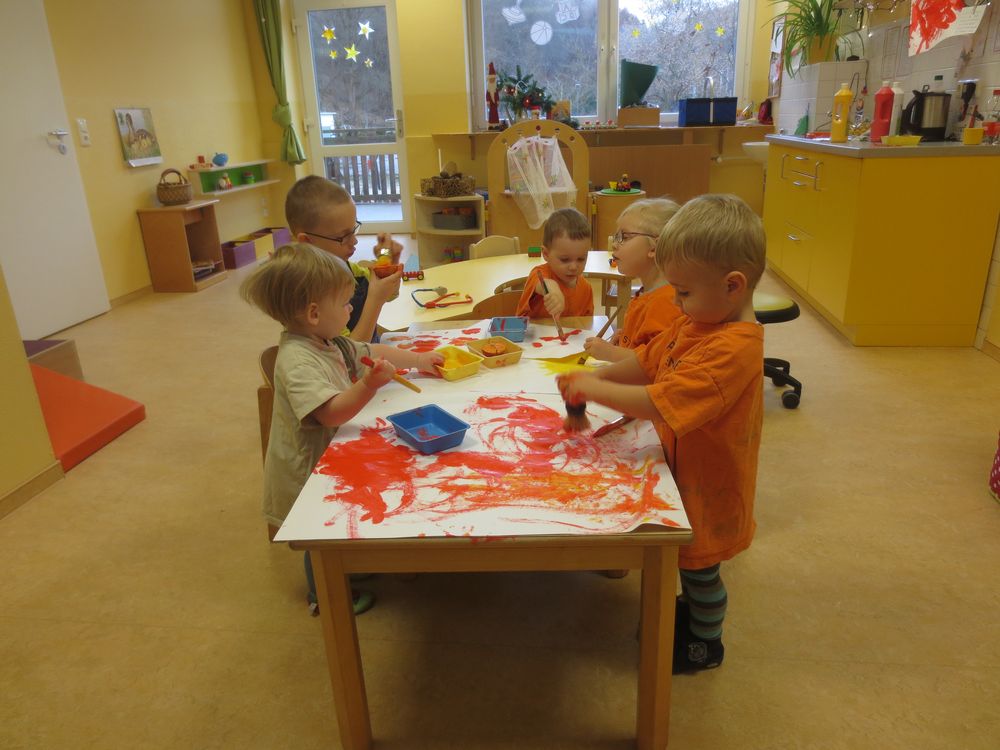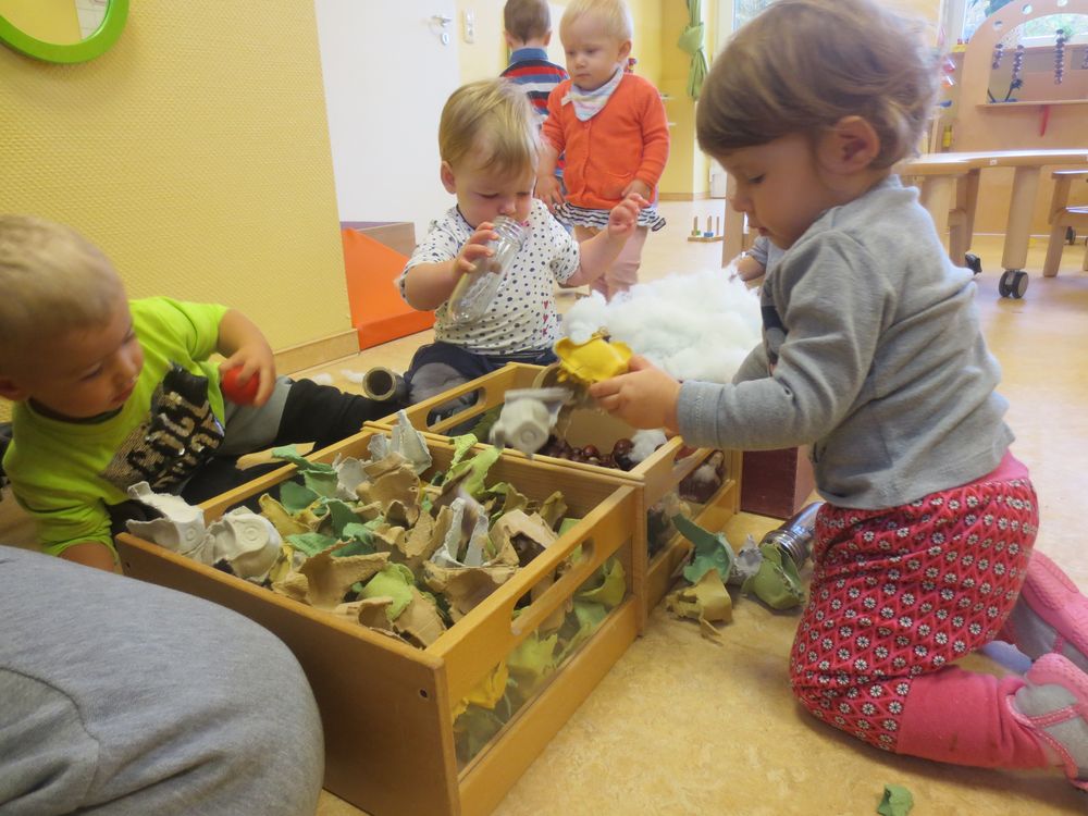 Wir haben eine Krippengruppe mit Kapazität für 10 Kinder. Ab 2 bis 2,5 Jahren gestalten wir den Tag mit unseren Kindern in drei altersgemischten Gruppen und nutzen das Spiel bewusst als Methode zur Gestaltung der Lernprozesse.