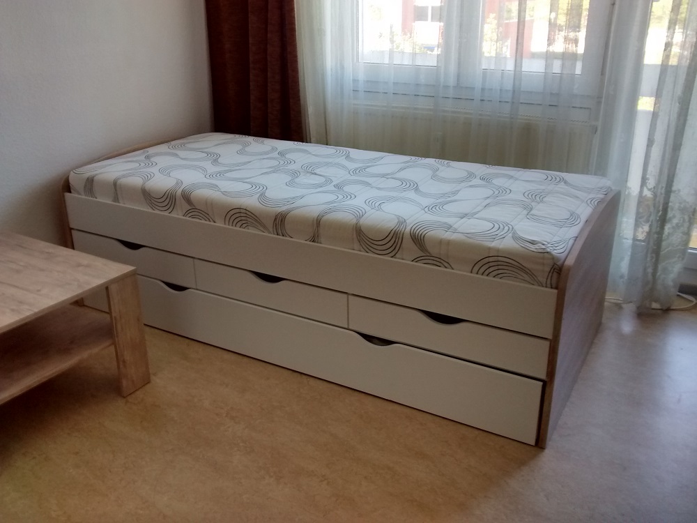 Die Dinge des täglichen Bedarfs kann man gleich im gegenüberliegenden Einkaufszentrum bekommen. Bei kleinen Wehwehchen hilft die direkt nebenan befindliche Apotheke. Die integrative AWO-Kindertagesstätte „Knirpsenland“ liegt keine 5 Gehminuten entfernt und ermöglicht so eine Unterbringung der kleinen Bewohner in Reichweite. Durch die gute Verkehrsanbindung ist man auch mit dem Bus schnell in der Stadt, wo einem Theater, Kino, Gaststätten oder Geschäfte zur Verfügung stehen.