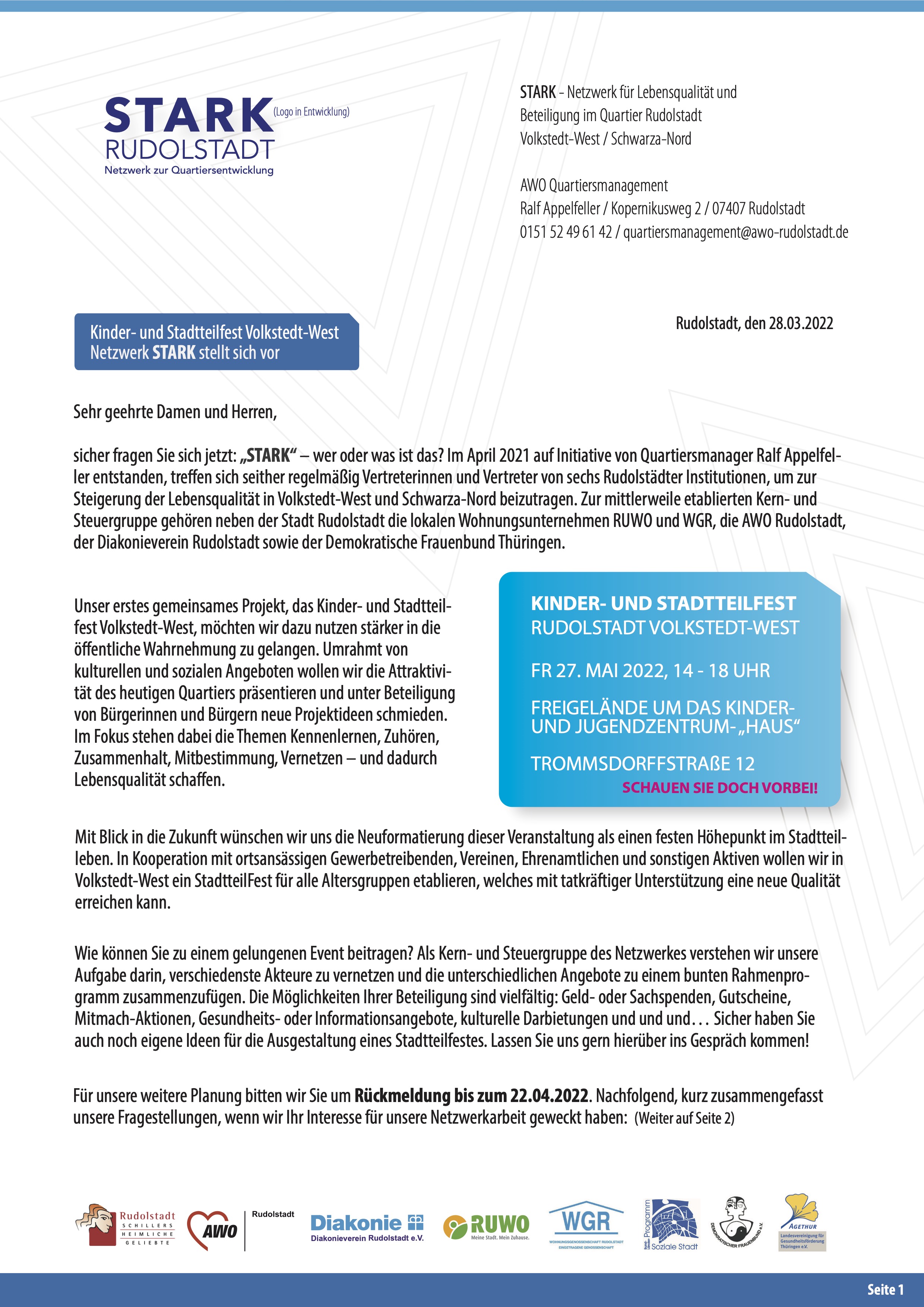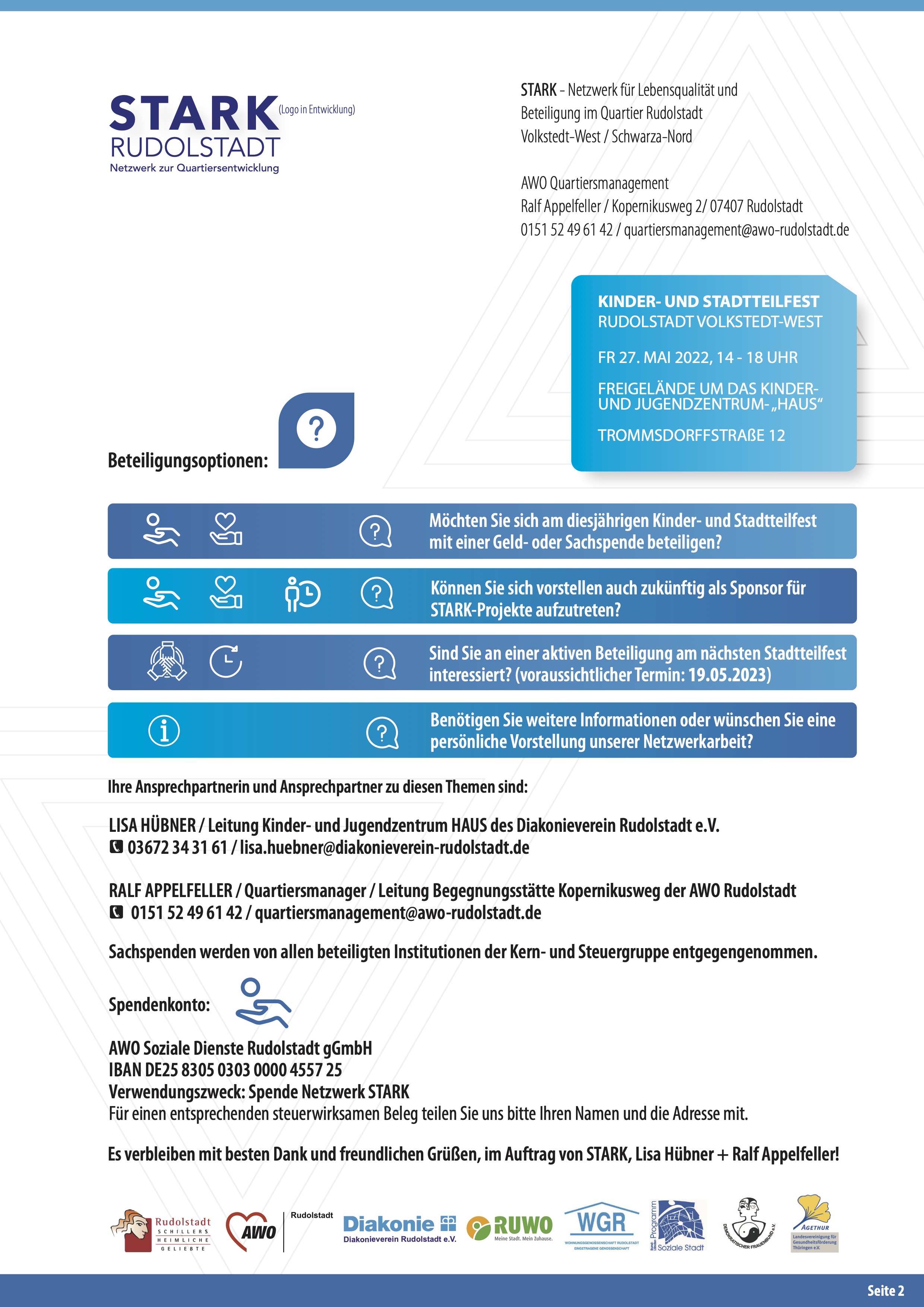 Erstmalig mit Teilorganisation und Beteiligung von STARK, dem neuen Netzwerk für mehr Lebensqualität und Bürgerbeteiligung im Wohnquartier.