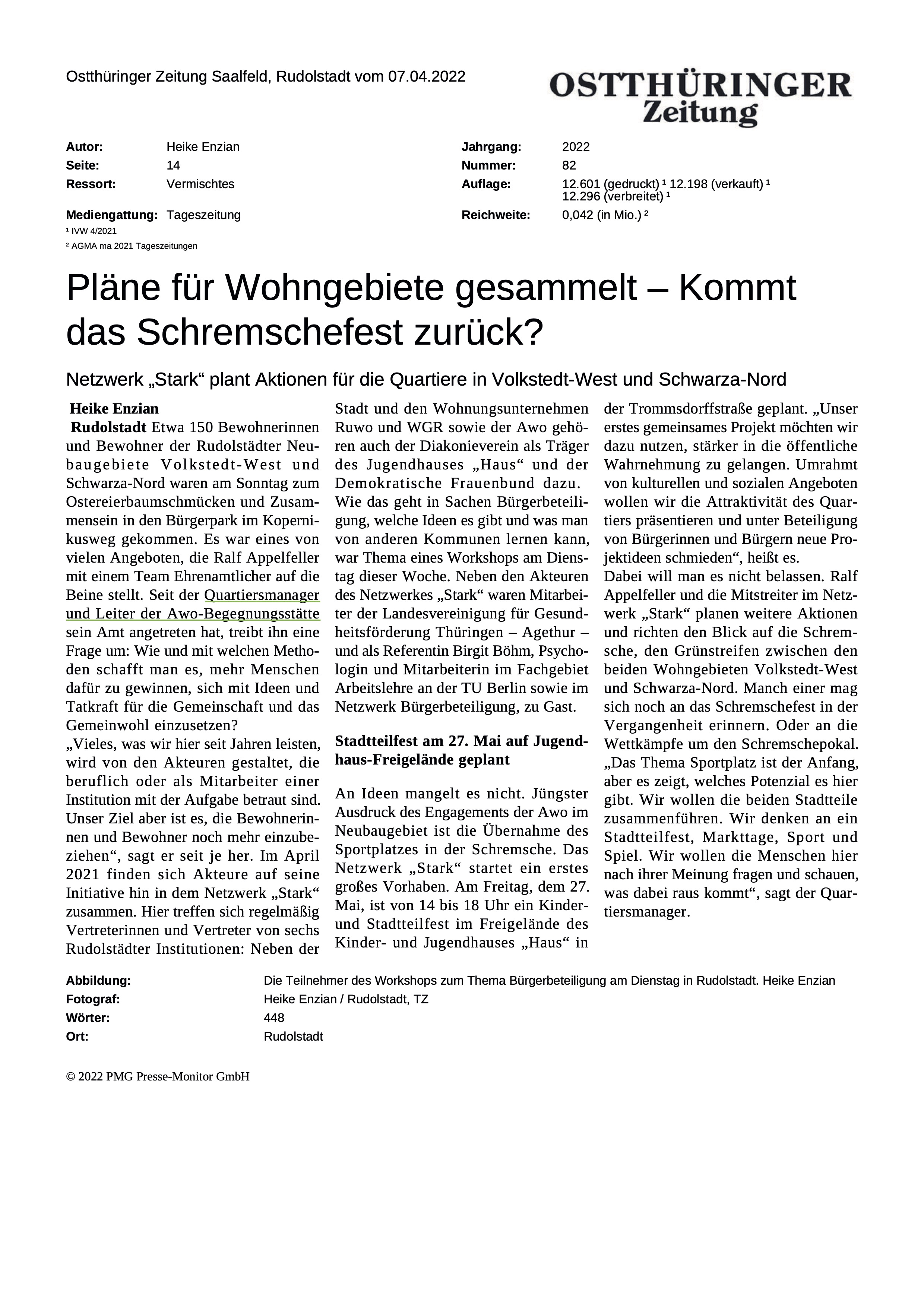 Wohngebieten Schwarza-Nord und Volkstedt-West, sehr am Herzen liegen. Dies ist