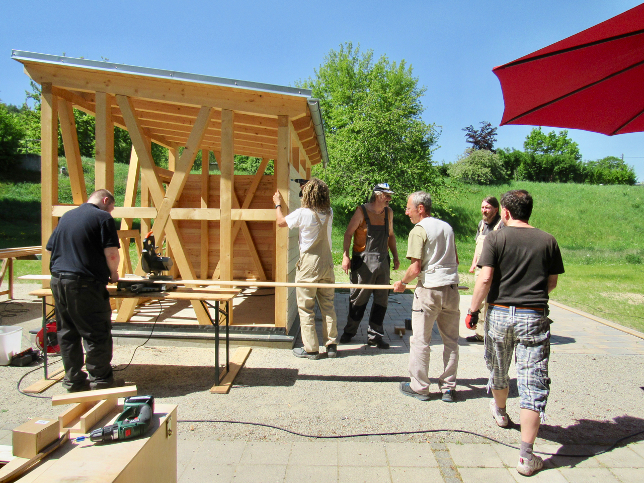 Nach weiterer Wartezeit, drei erfolgreichen Arbeitseinsätzen, einer wiederhergerichteten Sitzecke mit Bepflanzung und vielen Anpassungen des Konzeptes an die vorhandenen Geldsituation, stehen wir nun kurz vor dem ersten Baubeginn.