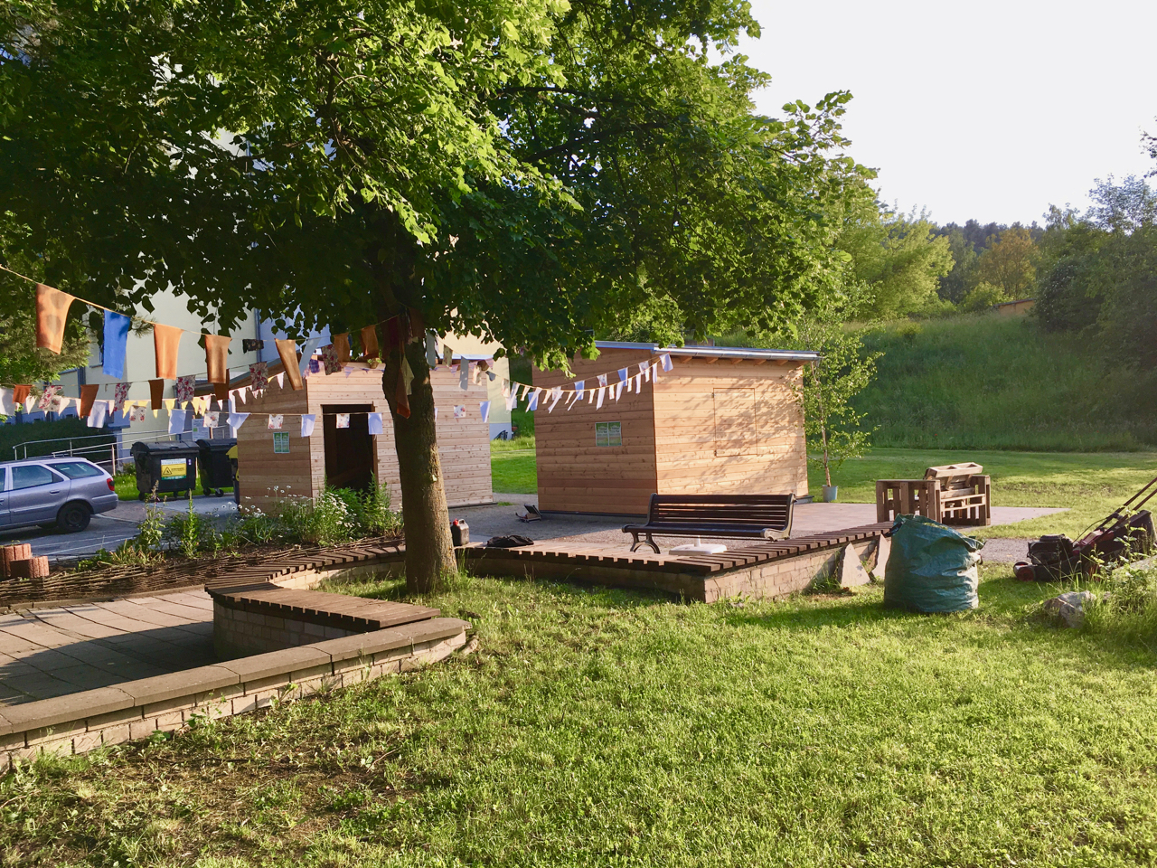 Nach einer lang anhaltenden und nicht unkomplizierten 1. Bauphase verfügt nun unser Bürgerpark über ein funktionierendes Wegenetz, zwei massiven Funktionsbauten, Wasserauffangbehältern, professioneller Beetumrandung, einer Müllplatzeinhausung, einer neuen Parkbeleuchtung und einem verlegten Stromkabel. Viele Bürger*innen beteiligten sich in vielen Aufbaustunden an den Arbeiten. Durch unsere neuen Funktionspavillions konnten wir einige Veranstaltungen und unser gut besuchtes wöchentliches SommerCaf'e in neuen Qualität organisieren.