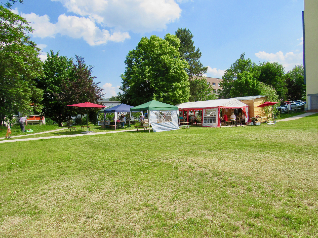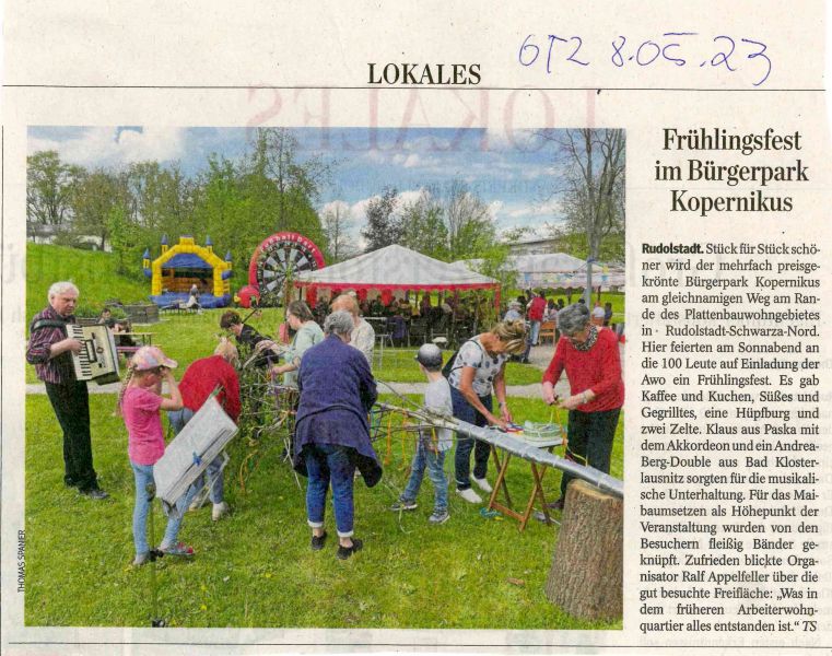 Frühlingsfest des Stadtteiles mit Maibaumsetzen und offizieller Einweihung der neuen Pavillons.
