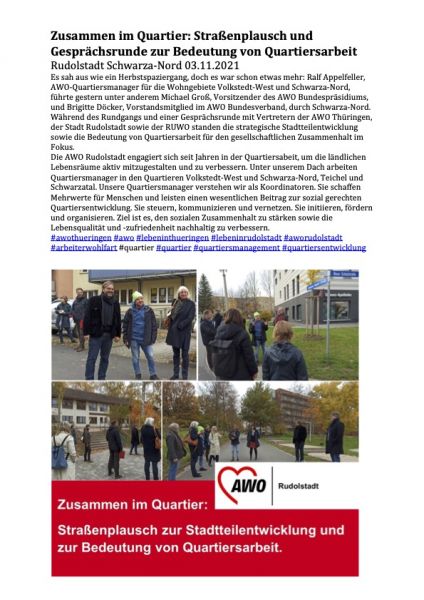 Quartiersmanagement der Rudolstädter Stadtteile Volkstedt-West und Schwarza-Nord