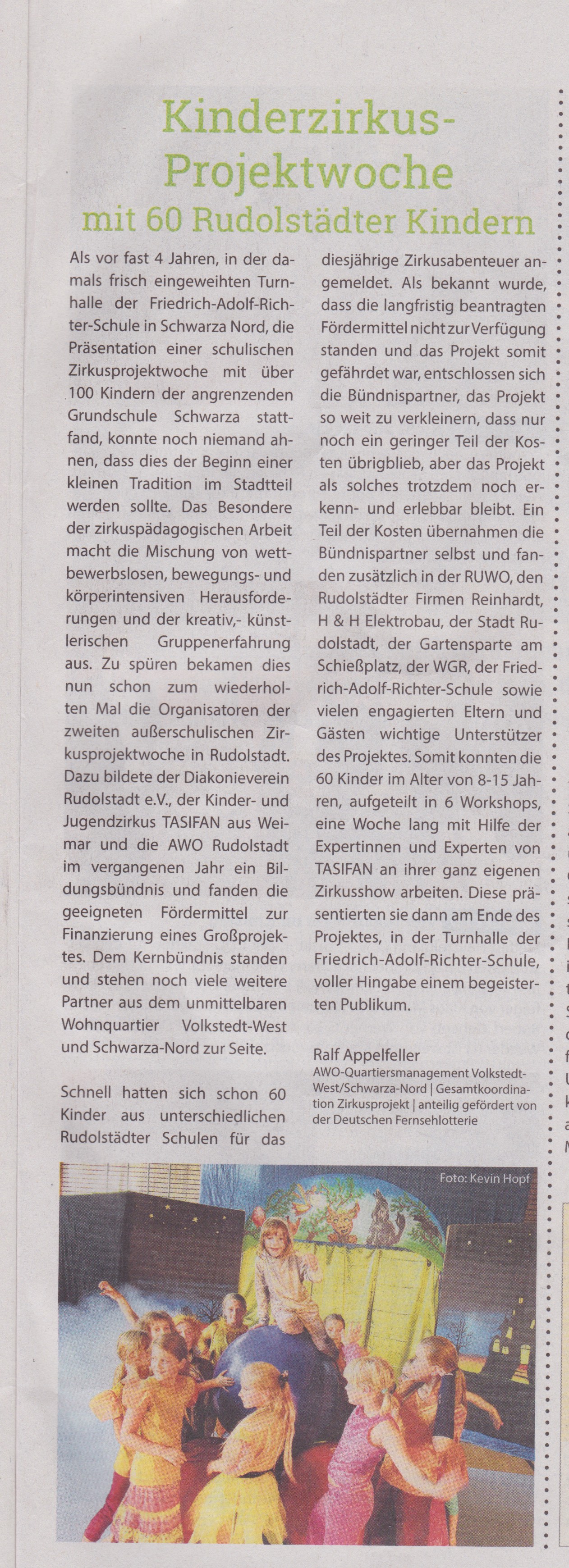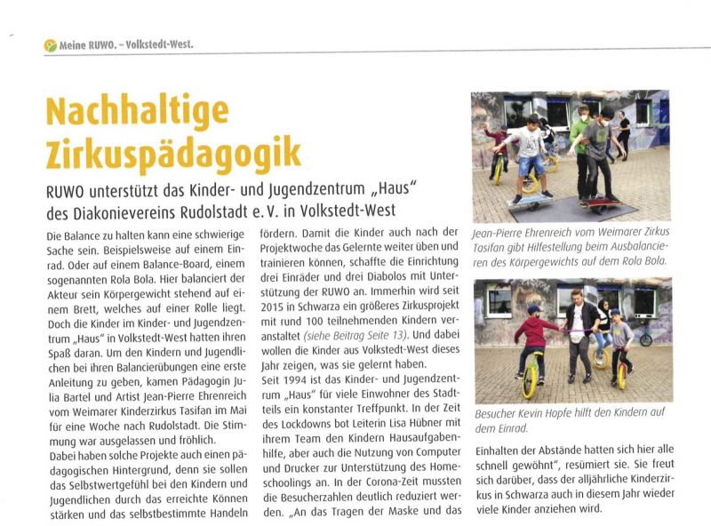 4. Rudolstädter Kinderzirkusprojektwoche startet von 14.-20.09.2020 im Quartier