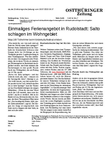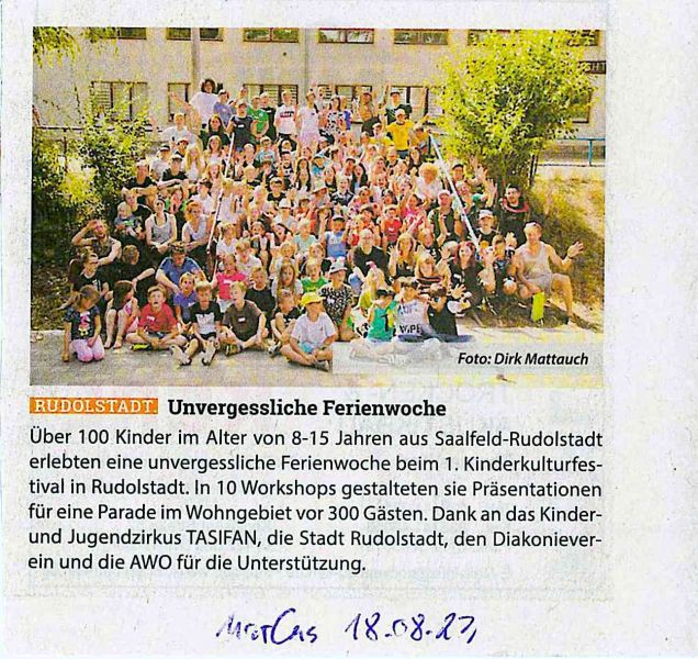 5. ZirkusprojektWoche Rudolstadt für 100 Kinder 8-15 Jahre