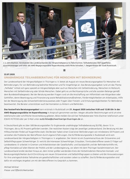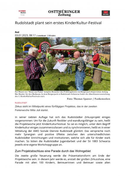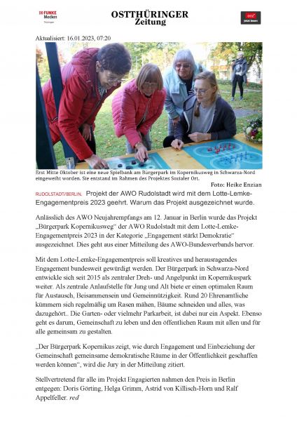 ebenfalls ein Grundanliegen des von der AWO-Rudolstadt initiierten und von der Deutschen