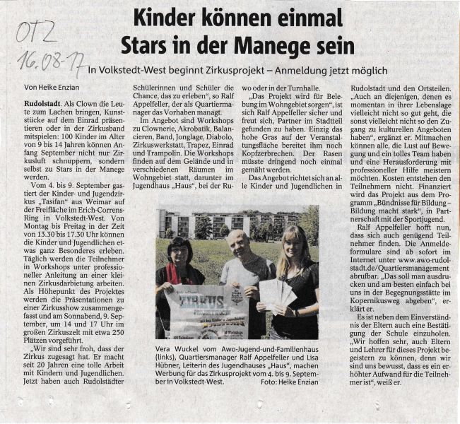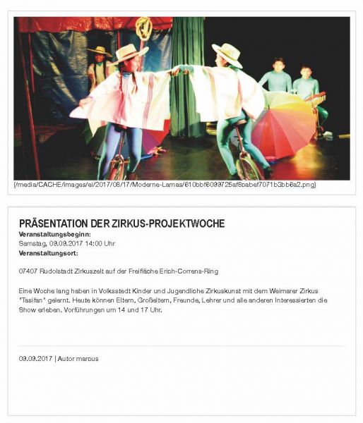 1. Zirkusprojekt für unser Quartier 04.09.-09.09.2017