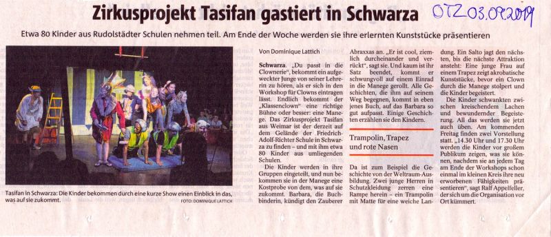 3. Zirkusprojekt in Kooperation mit dem Kinder- und Jugendzirkus TASIFAN aus Weimar