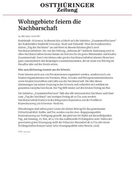 Tag der Nachbarn und Zusammenarbeit mit der nebenan-Stiftung